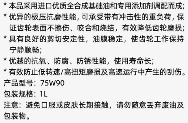當(dāng)前位置:產(chǎn)品展示>全合成轎車齒輪油75W90